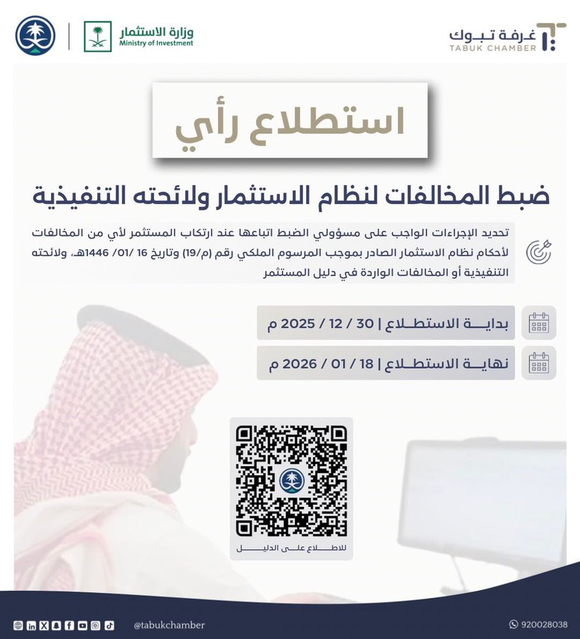 لاطّلاع على تعاميم غرفة تبوك عبر هذا الرابط: https://tabukchamber.sa/workrules