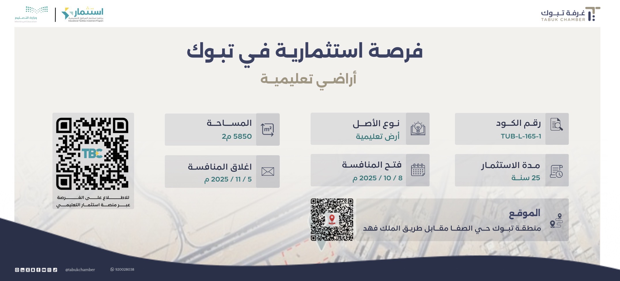 فرصة استثمارية " أراضي تعليمية " في تبوك